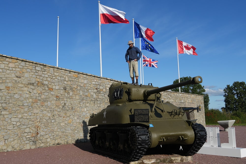 The next day, we ventured into other parts of northwestern France. First, we stopped at a large menhir called “Menhir de Champ-Dolent”. As kids, we watched a lot of Asterix and Obelix, so seeing a menhir was a fun little moment for us. Then we went to a small scenic park with cool rock formations, cliffs, and forest views - also plenty of charming walking paths. We had lunch and coffee at a nearby café and took a short walk. After a short rest, we drove to Mont Ormel hill, where General Maczek fought the Germans during WWII. I had a bit of a parkour fail there - my flip off a tank didn't go as planned, so I don't have the best memories of that place. Finally, we returned to the town of Falaise for our overnight stay.